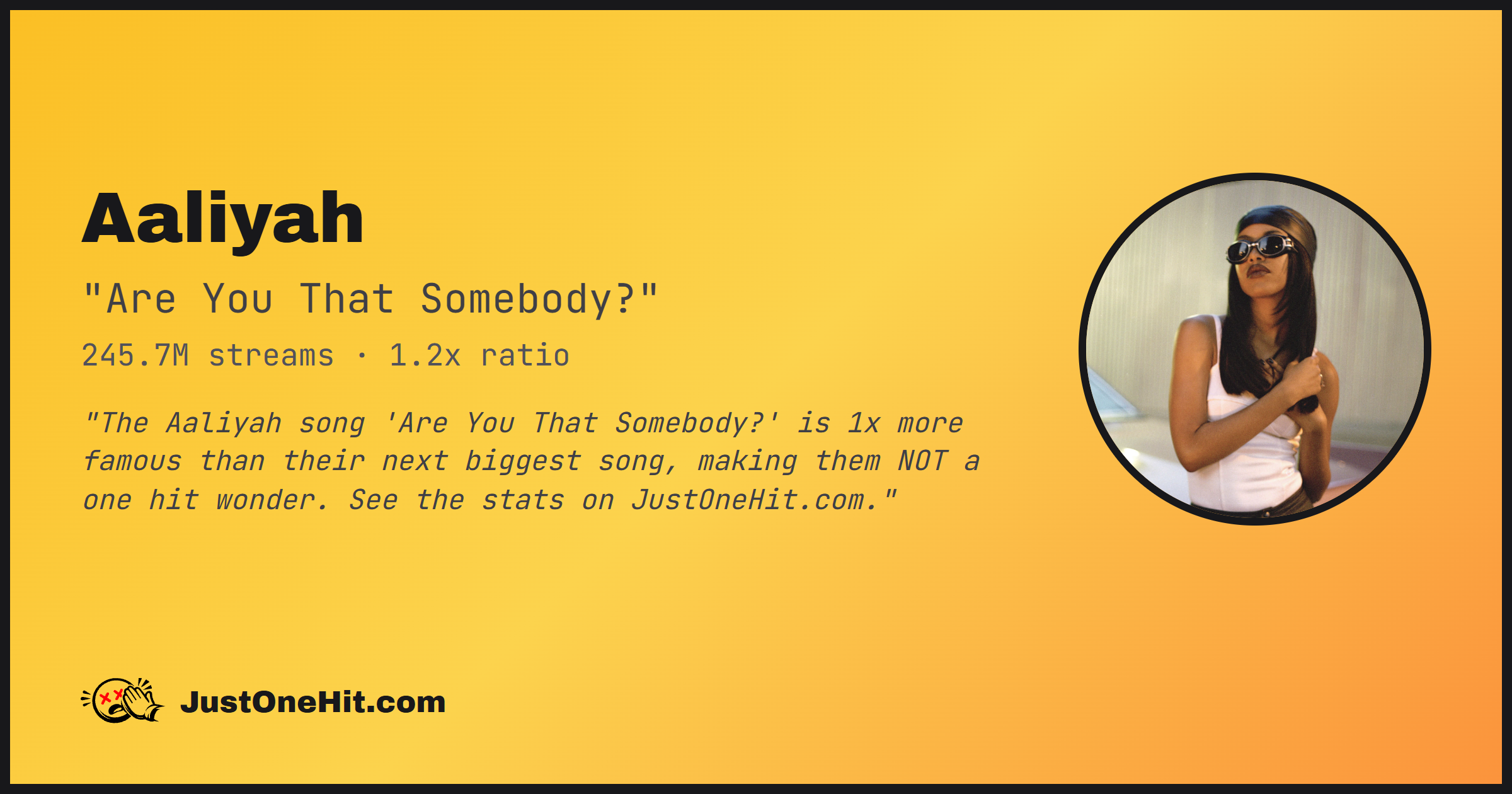 "The Aaliyah song 'Are You That Somebody?' is 1x more famous than their next biggest song, making them NOT a one hit wonder. See the stats on JustOneHit.com."