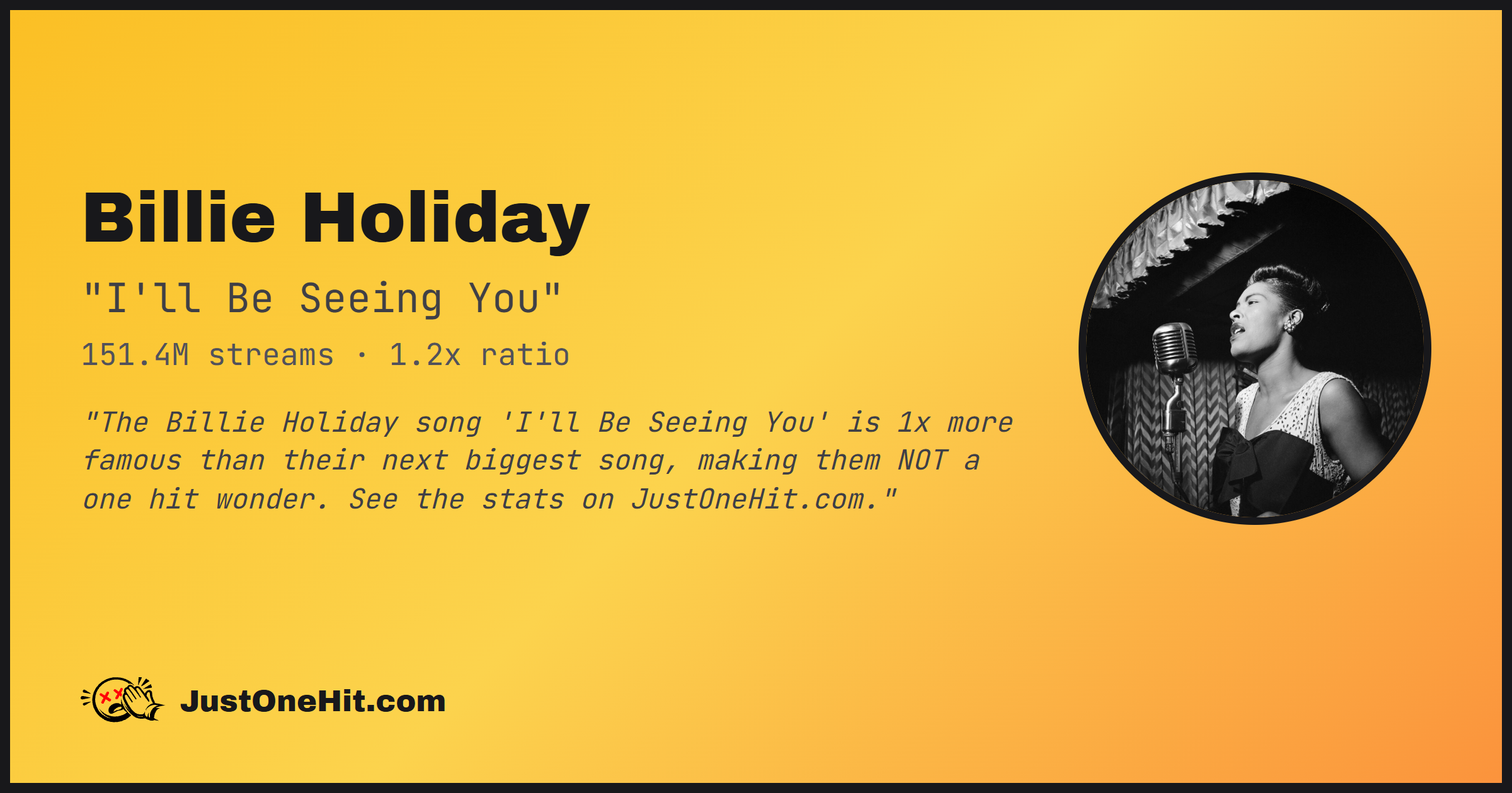 "The Billie Holiday song 'I'll Be Seeing You' is 1x more famous than their next biggest song, making them NOT a one hit wonder. See the stats on JustOneHit.com."