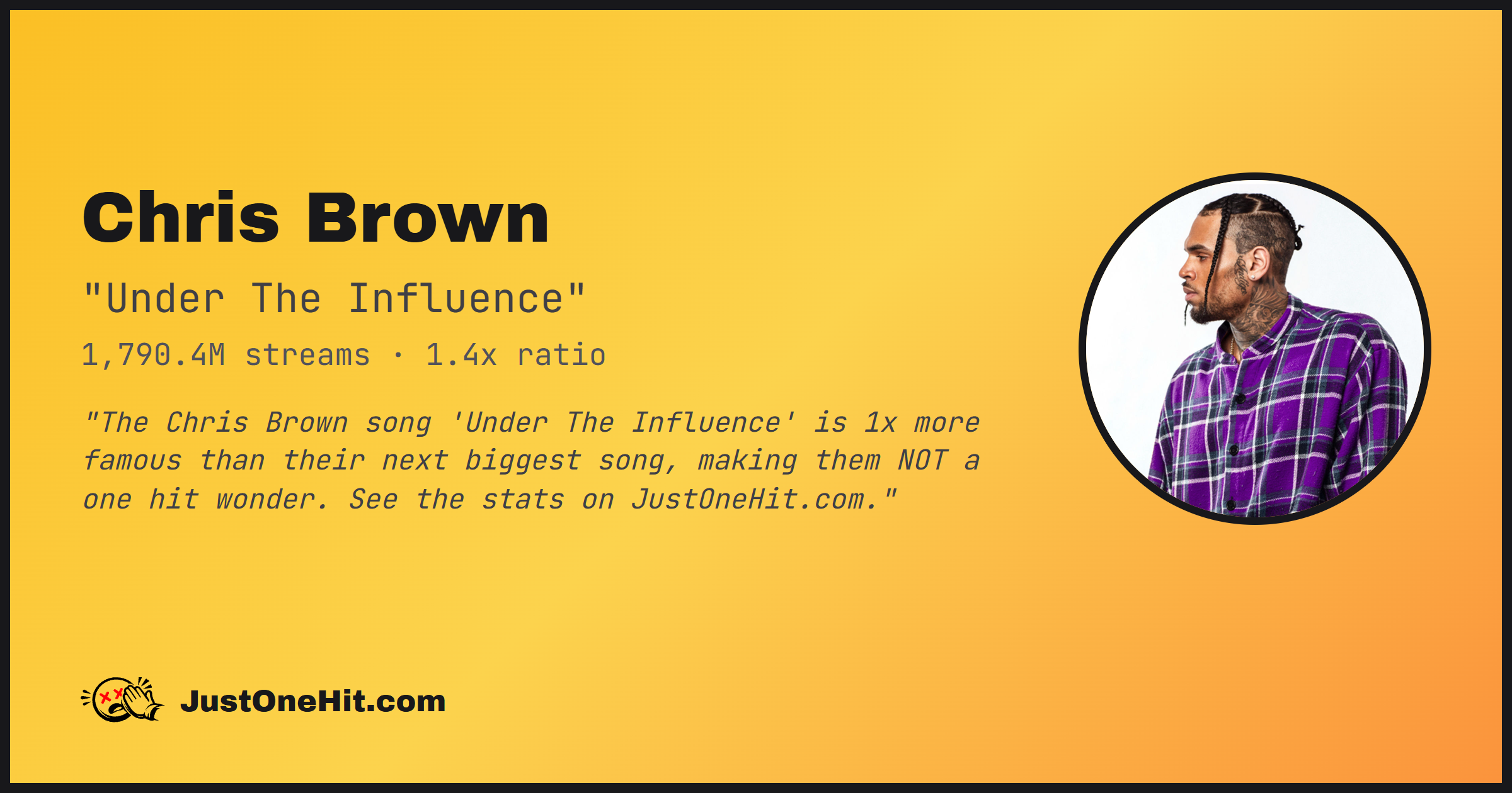 "The Chris Brown song 'Under The Influence' is 1x more famous than their next biggest song, making them NOT a one hit wonder. See the stats on JustOneHit.com."