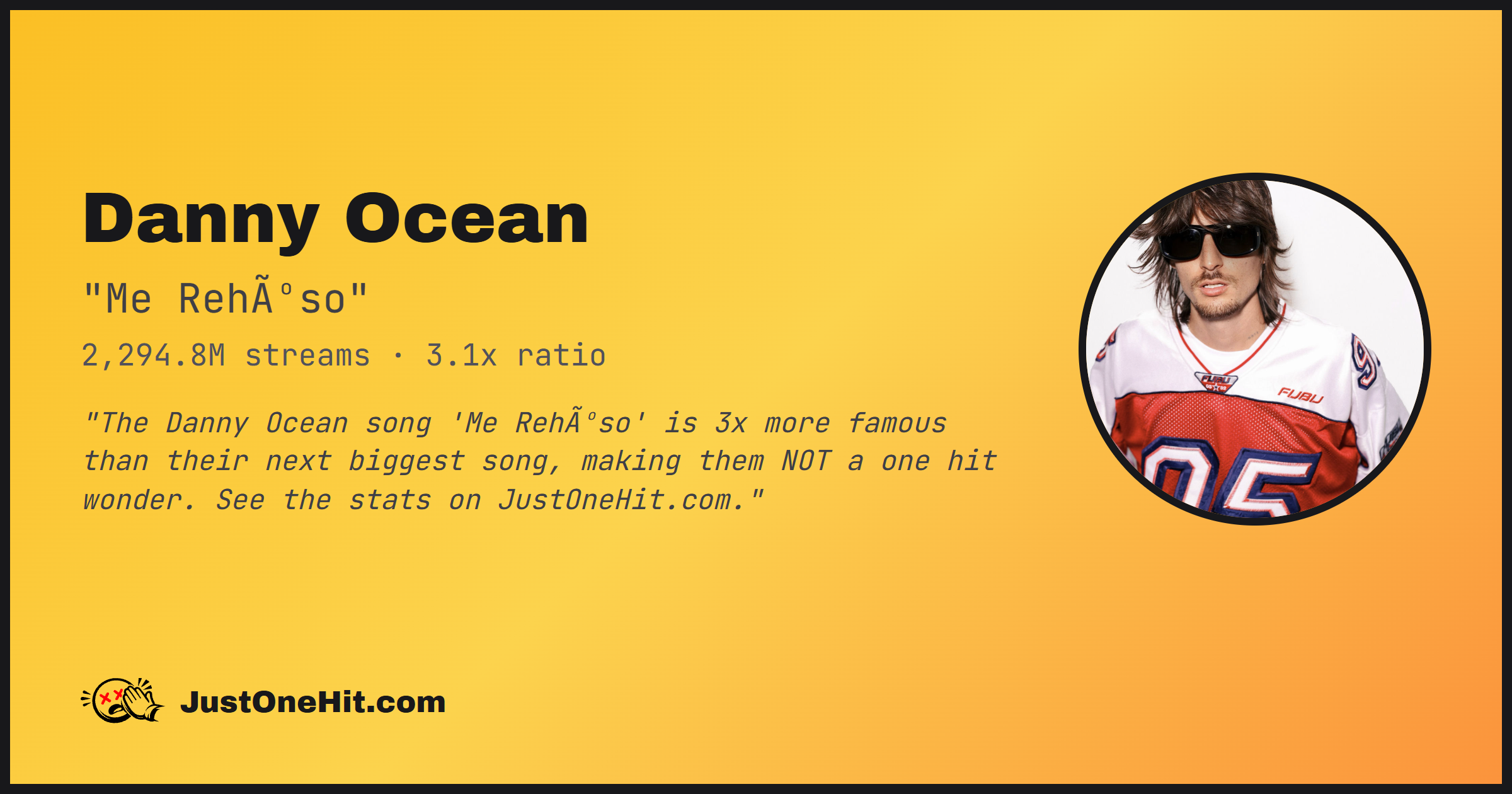 "The Danny Ocean song 'Me Rehúso' is 3x more famous than their next biggest song, making them NOT a one hit wonder. See the stats on JustOneHit.com."