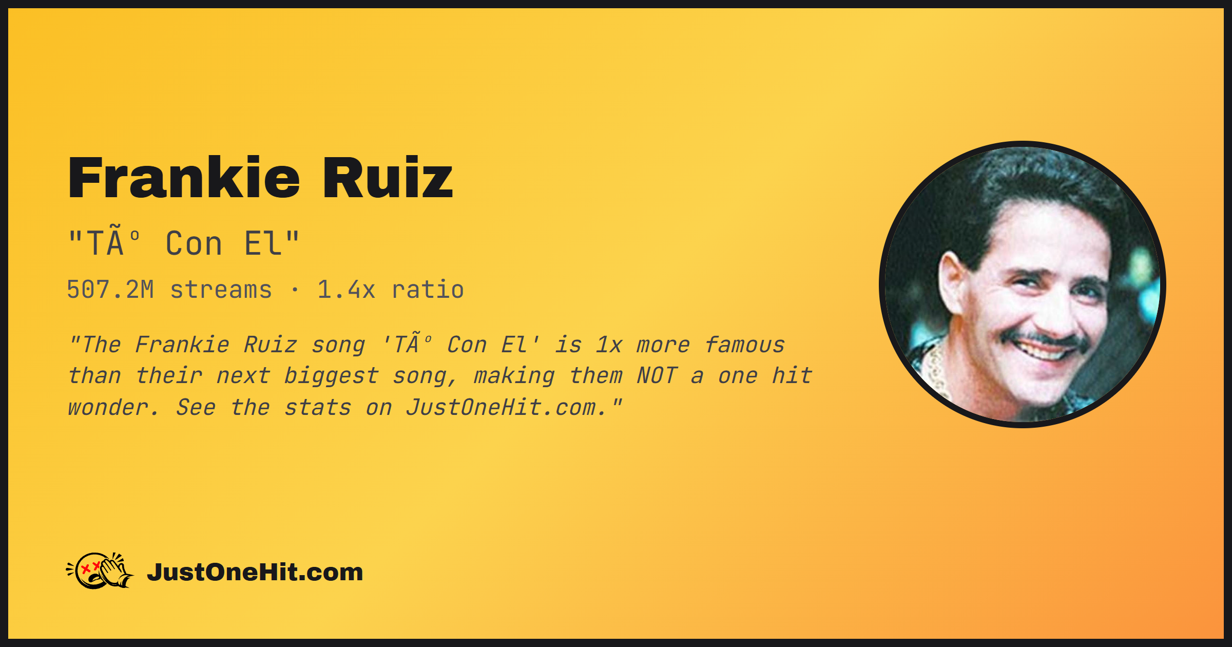 "The Frankie Ruiz song 'Tu Con El' is 1x more famous than their next biggest song, making them NOT a one hit wonder. See the stats on JustOneHit.com."