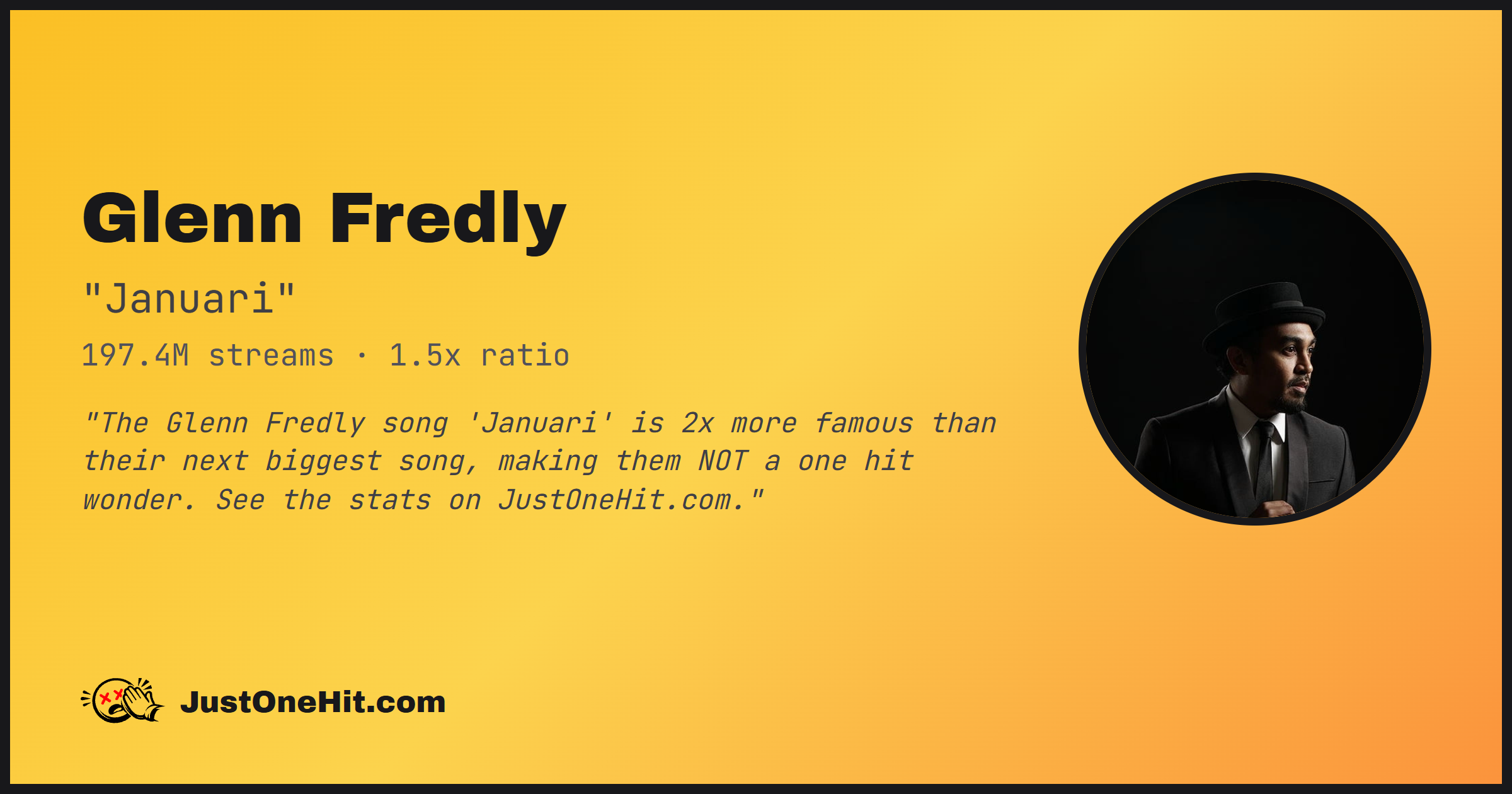 "The Glenn Fredly song 'Januari' is 2x more famous than their next biggest song, making them NOT a one hit wonder. See the stats on JustOneHit.com."