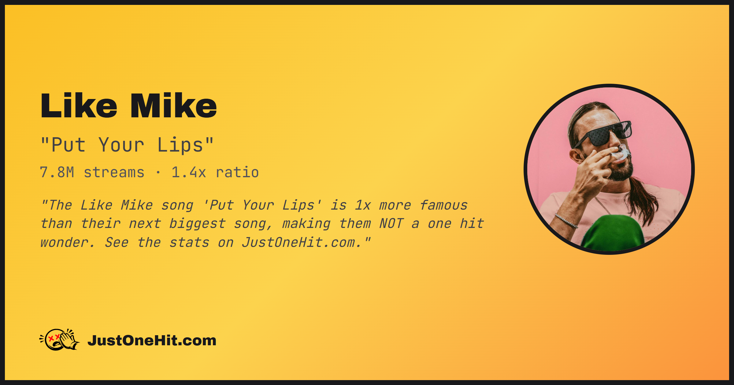 "The Like Mike song 'Put Your Lips' is 1x more famous than their next biggest song, making them NOT a one hit wonder. See the stats on JustOneHit.com."