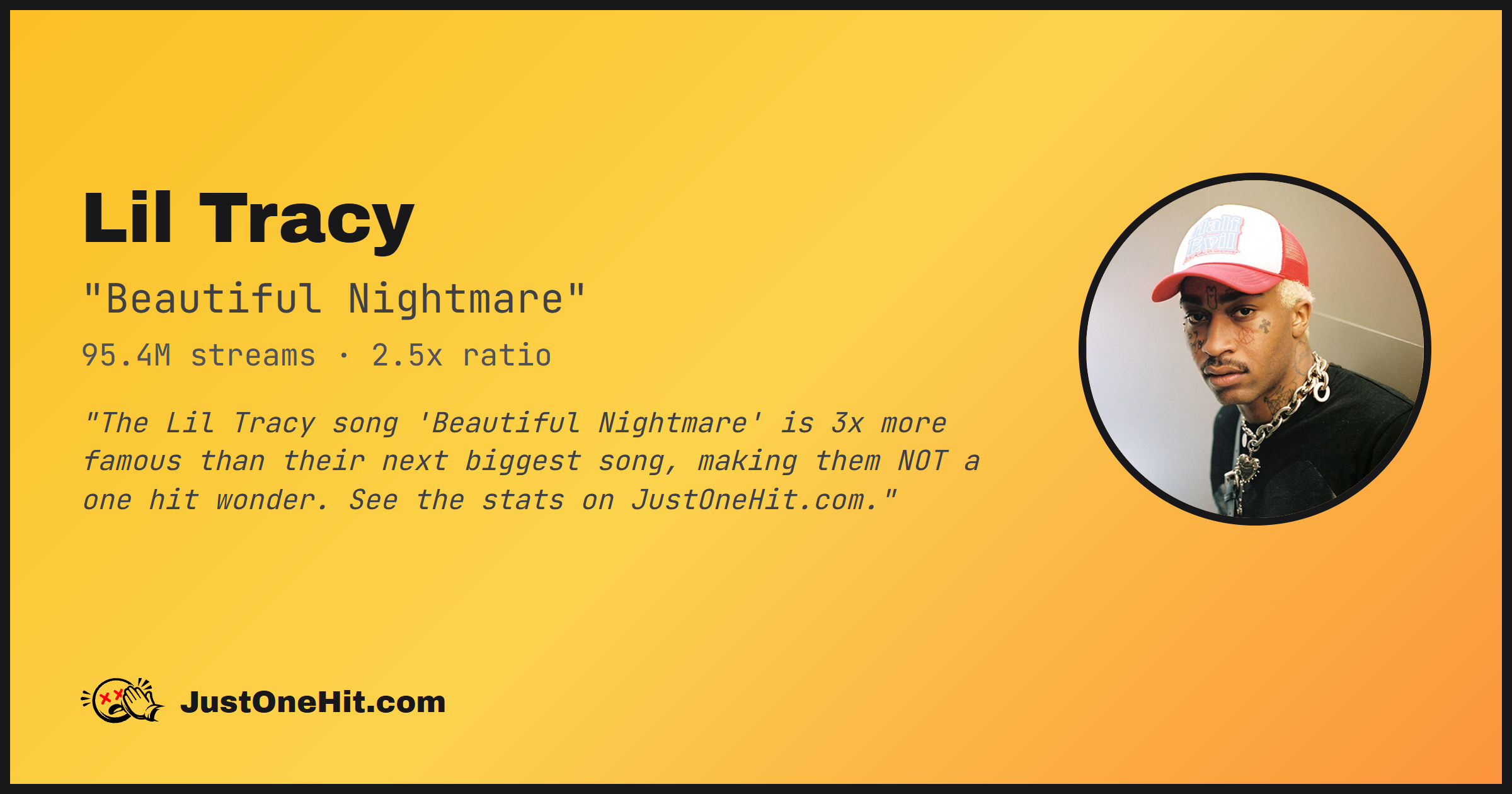 "The Lil Tracy song 'Beautiful Nightmare' is 3x more famous than their next biggest song, making them NOT a one hit wonder. See the stats on JustOneHit.com."