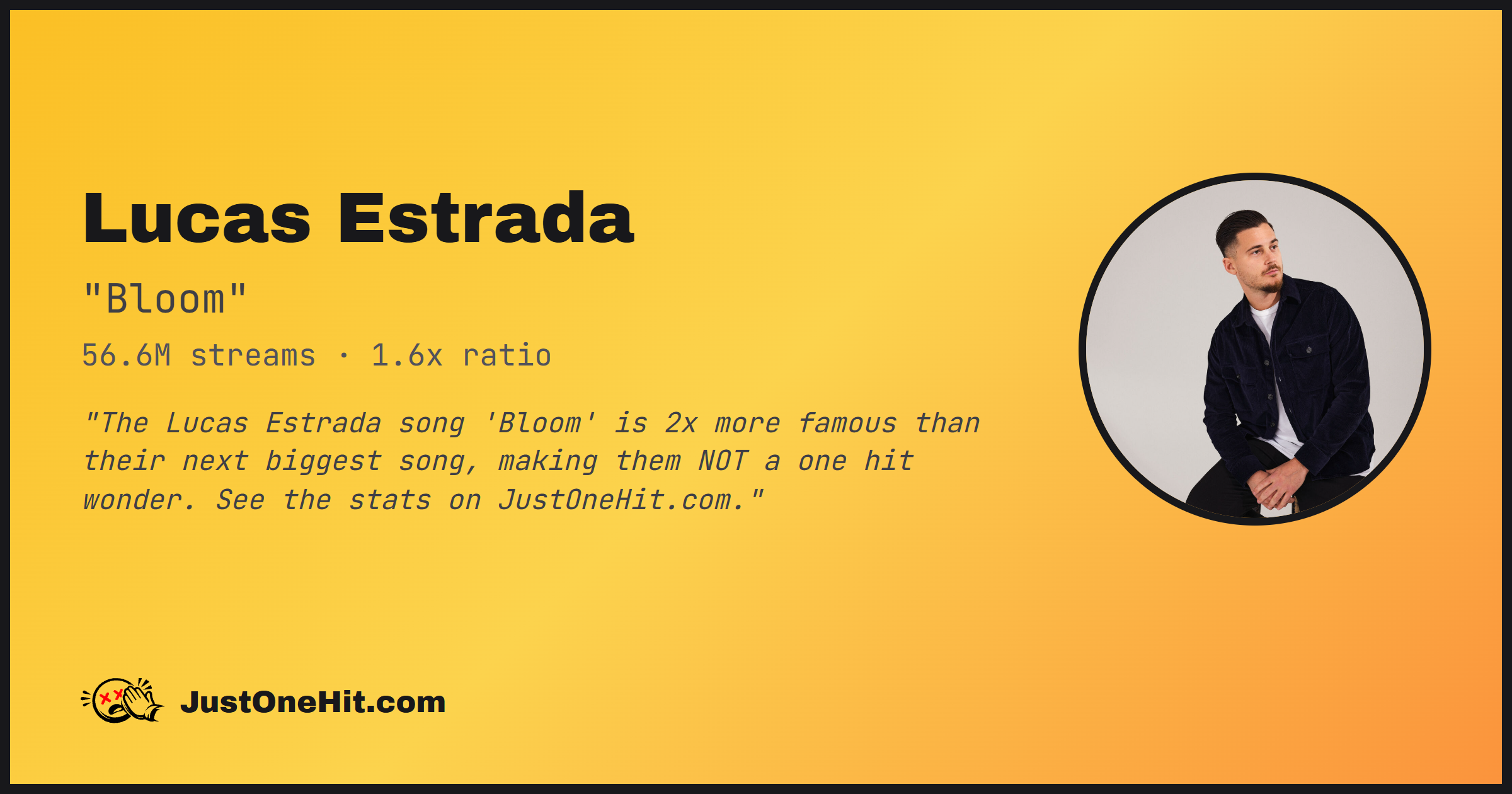 "The Lucas Estrada song 'Bloom' is 2x more famous than their next biggest song, making them NOT a one hit wonder. See the stats on JustOneHit.com."