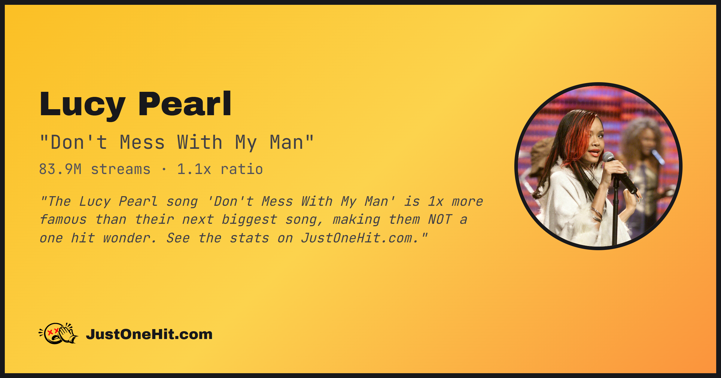 "The Lucy Pearl song 'Don't Mess With My Man' is 1x more famous than their next biggest song, making them NOT a one hit wonder. See the stats on JustOneHit.com."