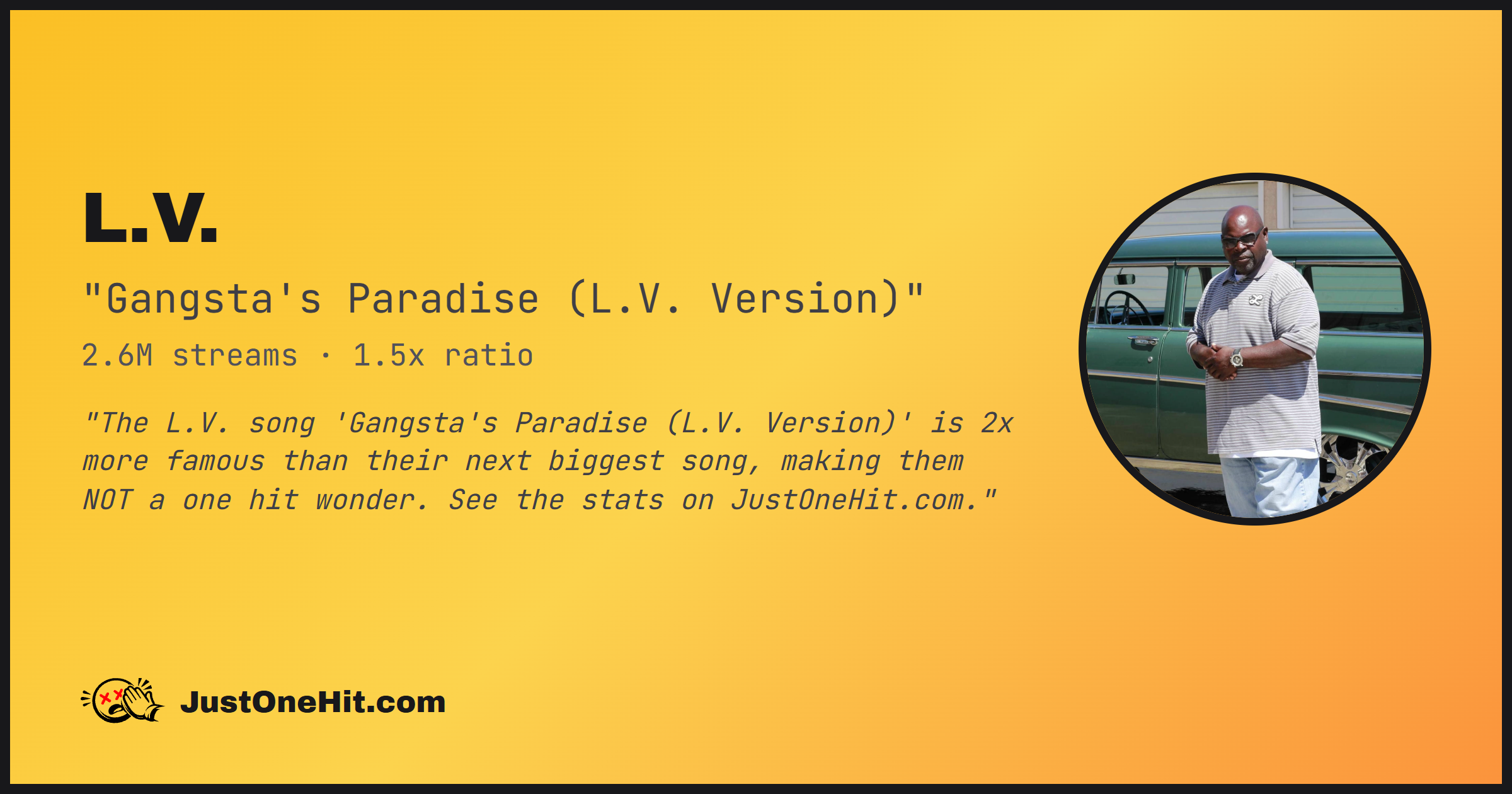 "The L.V. song 'Gangsta's Paradise (L.V. Version)' is 1x more famous than their next biggest song, making them NOT a one hit wonder. See the stats on JustOneHit.com."