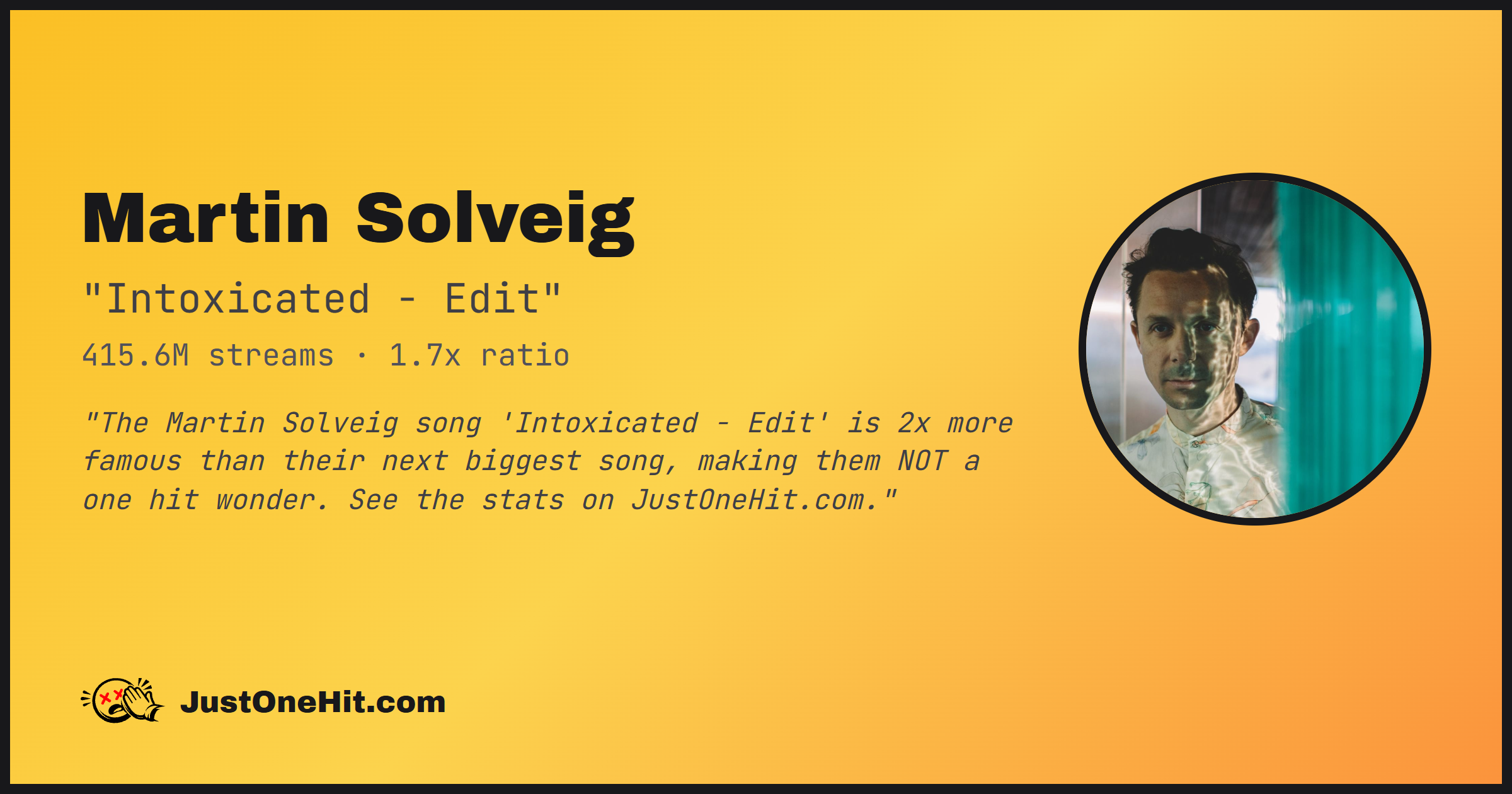 "The Martin Solveig song 'Intoxicated - Edit' is 2x more famous than their next biggest song, making them NOT a one hit wonder. See the stats on JustOneHit.com."