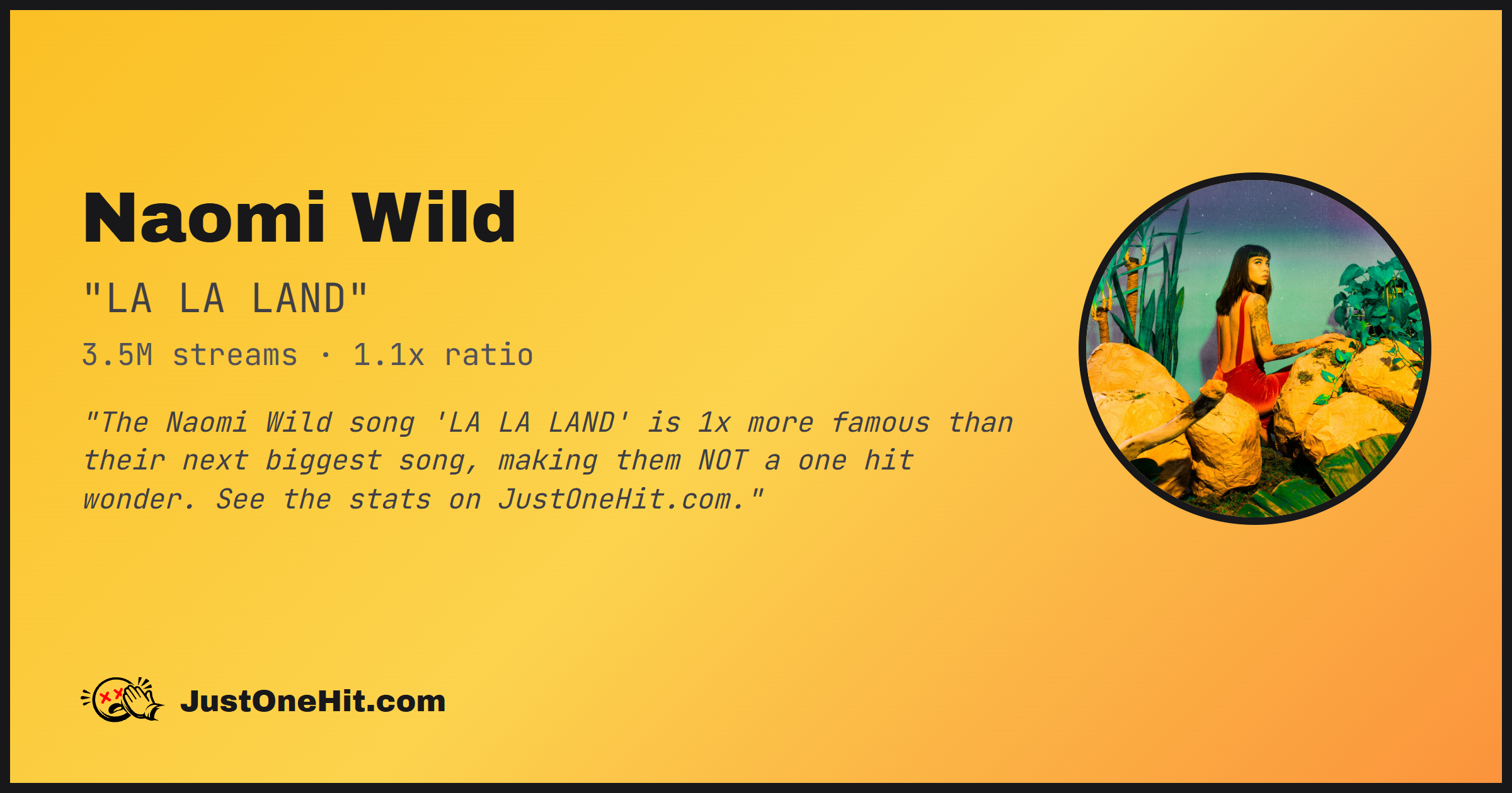 "The Naomi Wild song 'LA LA LAND' is 1x more famous than their next biggest song, making them NOT a one hit wonder. See the stats on JustOneHit.com."