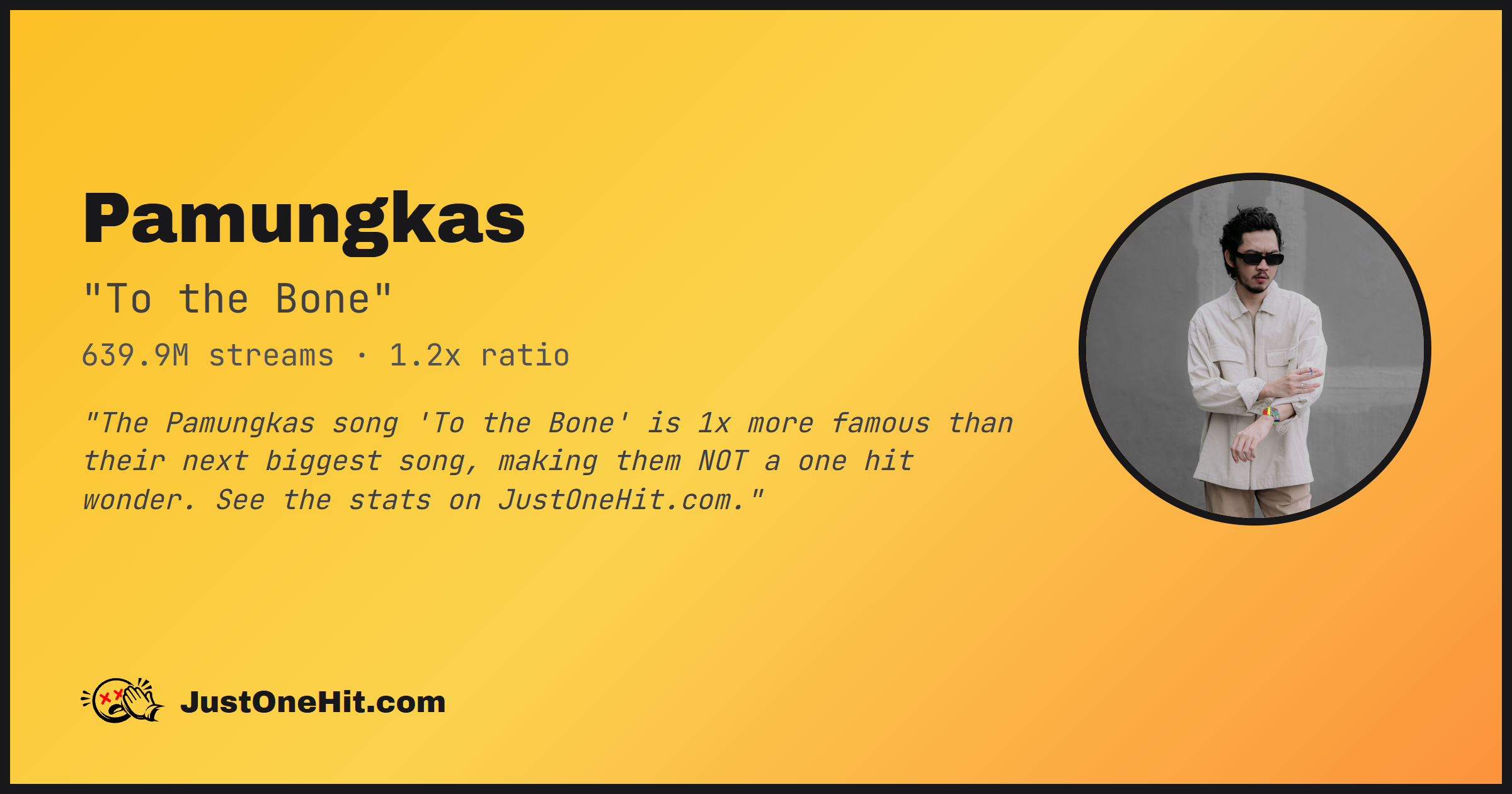 "The Pamungkas song 'To the Bone' is 1x more famous than their next biggest song, making them NOT a one hit wonder. See the stats on JustOneHit.com."