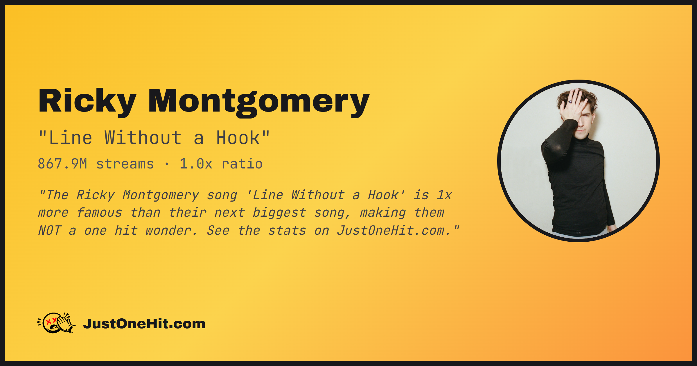 "The Ricky Montgomery song 'Line Without a Hook' is 1x more famous than their next biggest song, making them NOT a one hit wonder. See the stats on JustOneHit.com."
