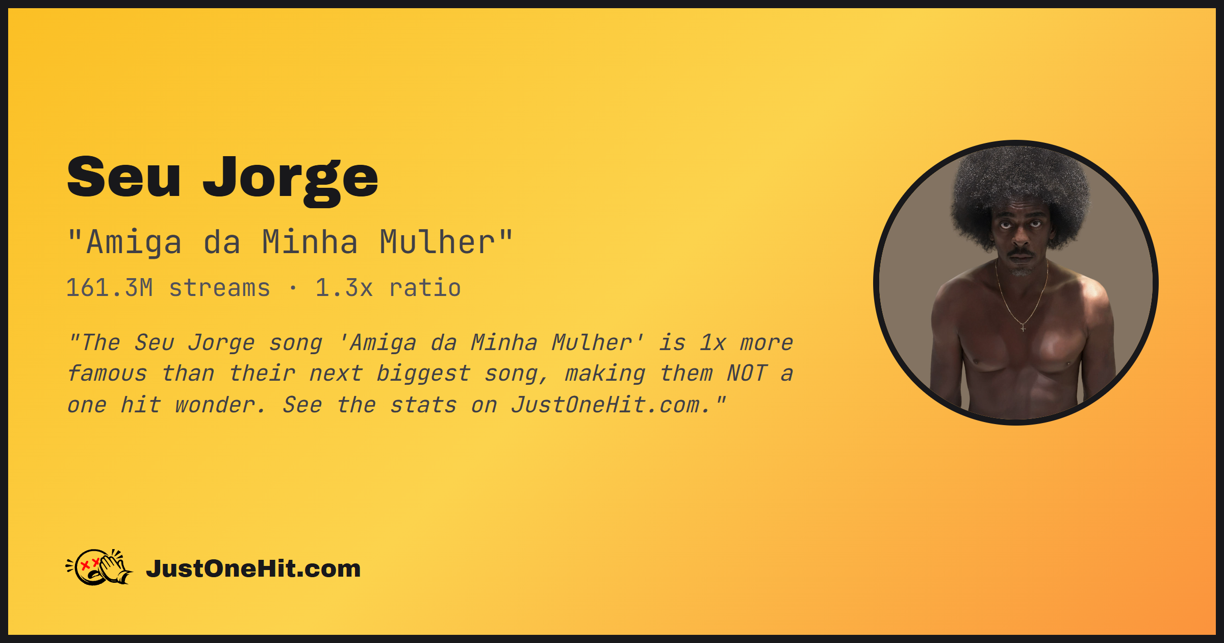"The Seu Jorge song 'Amiga da Minha Mulher' is 1x more famous than their next biggest song, making them NOT a one hit wonder. See the stats on JustOneHit.com."