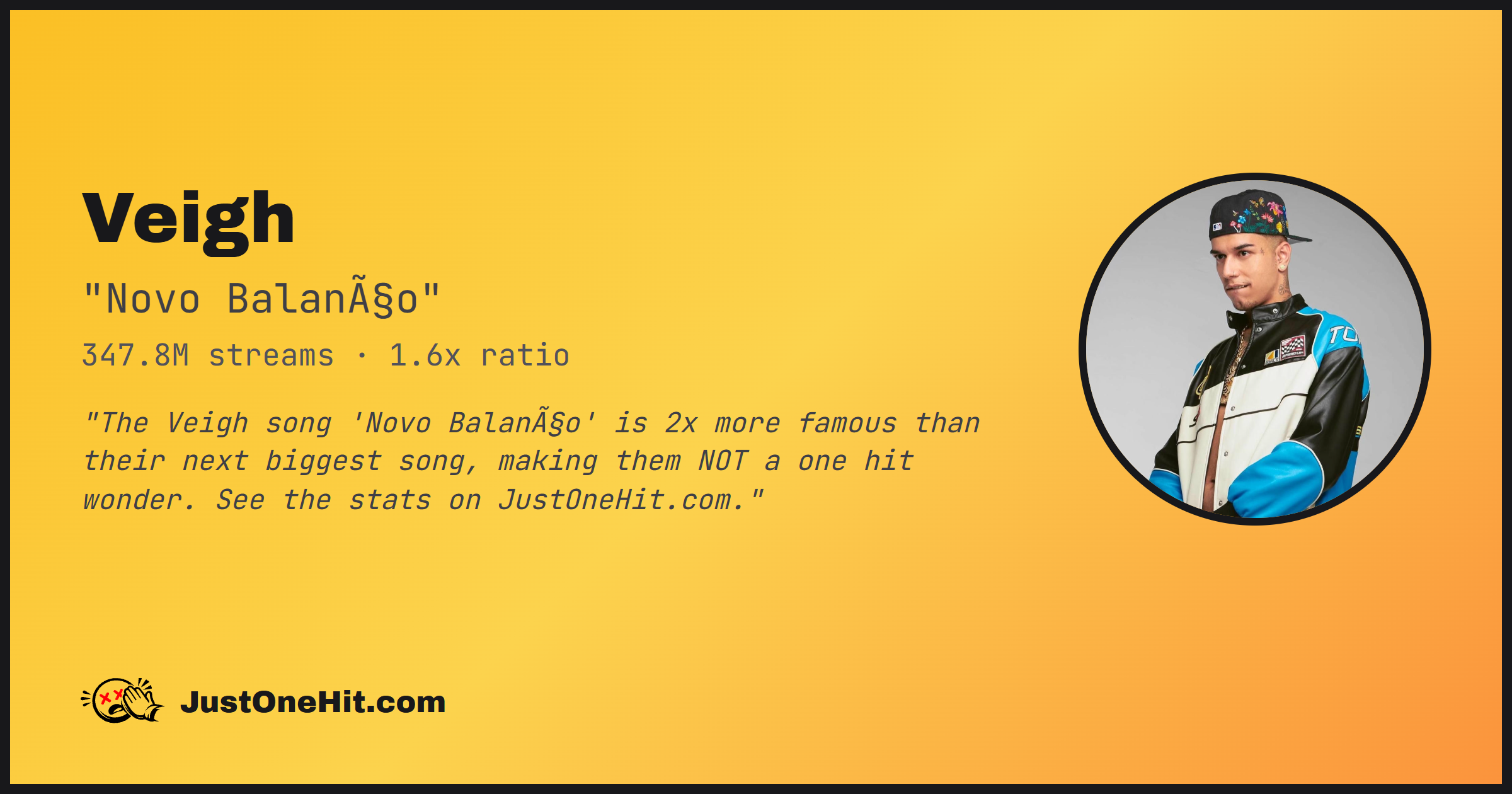 "The Veigh song 'Novo Balanço' is 2x more famous than their next biggest song, making them NOT a one hit wonder. See the stats on JustOneHit.com."